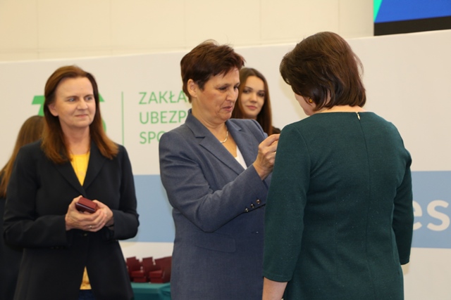 Minister Halina Szymańska, Szef Kancelarii Prezydenta RP, wręczyła pracownikom ZUS odznaczenia państwowe, natomiast prof. Gertruda Uścińska, Prezes ZUS, wręczyła odznaki Zakładu za profesjonalizm w pracy.