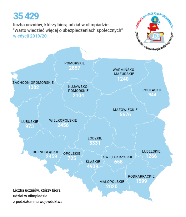 Ponad 35,4 tys. uczniów z niemal tysiąca szkół zgłosiło się do szóstej olimpiady o ubezpieczeniach społecznych dla szkół ponadpodstawowych. Już 2 grudnia uczniowie, którzy biorą udział w „Lekcjach z ZUS” przystąpią do pierwszego, szkolnego etapu Olimpiady „Warto wiedzieć więcej o ubezpieczeniach społecznych”.