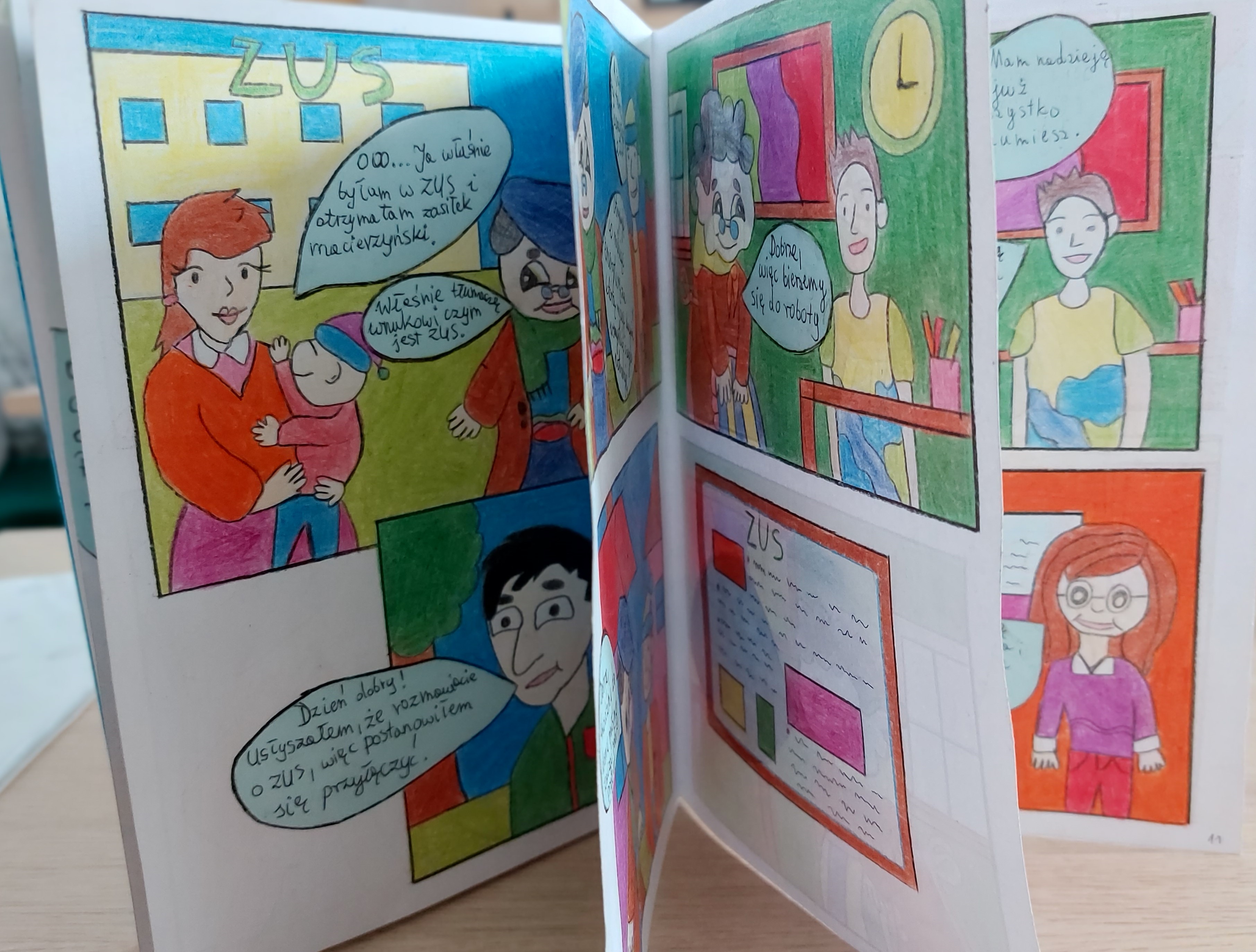 Zadaniem uczestników projektu było wykonanie filmu, plakatu lub komiksu, który wyjaśnia dlaczego ubezpieczenia społeczne są ważne.