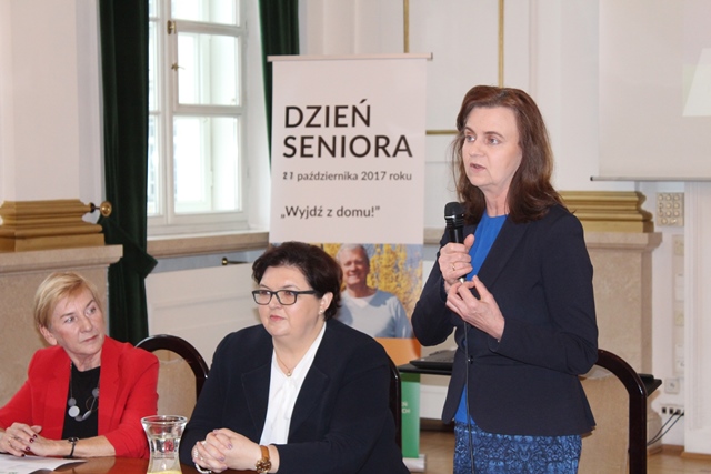 Dr Elżbieta Ostrowska podziękowała Zakładowi Ubezpieczeń Społecznych za wspólne zorganizowanie Dnia Seniora. Przypomniała, że seniorzy i renciści stanowią najliczniejszą grupę klientów i świadczeniobiorców Zakładu, którzy doceniają stabilność i pewność pobieranych świadczeń. Doceniają także coraz lepszą obsługę na salach obsługi klienta, a przede wszystkim to, że ZUS zaczyna mówić do swoich klientów „ludzkim głosem” – decyzje i pisma zus-owskie są coraz bardziej zrozumiałe dla przeciętnego emeryta. Zamiast życzeń przewodnicząca PZERiI zacytowała fragment wiersza Wisławy Szymborskiej „Jak się czuję”: