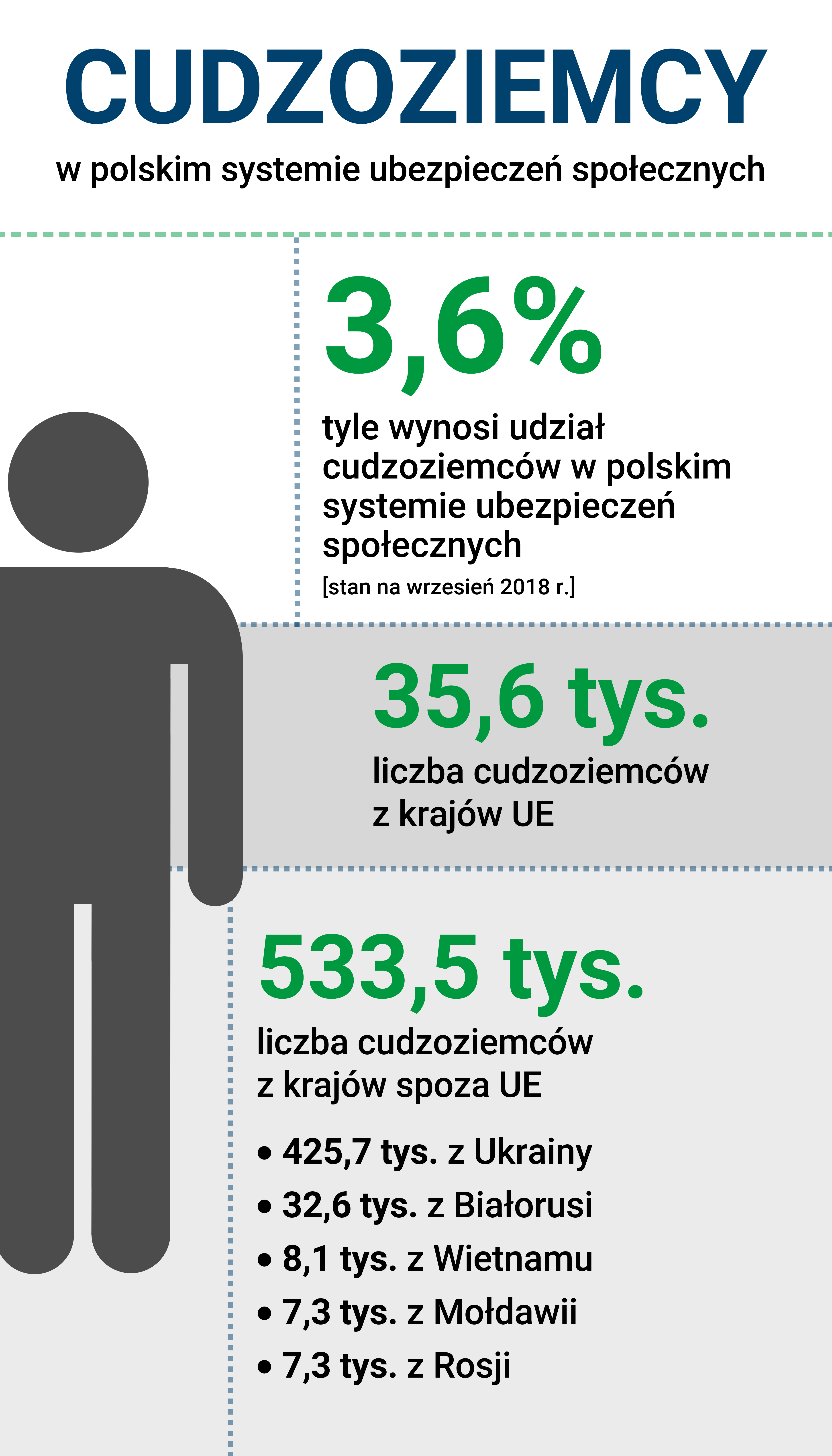 ubezpieczonych w ZUS, obcokrajowcy stanowią już 3,6%. Dominują