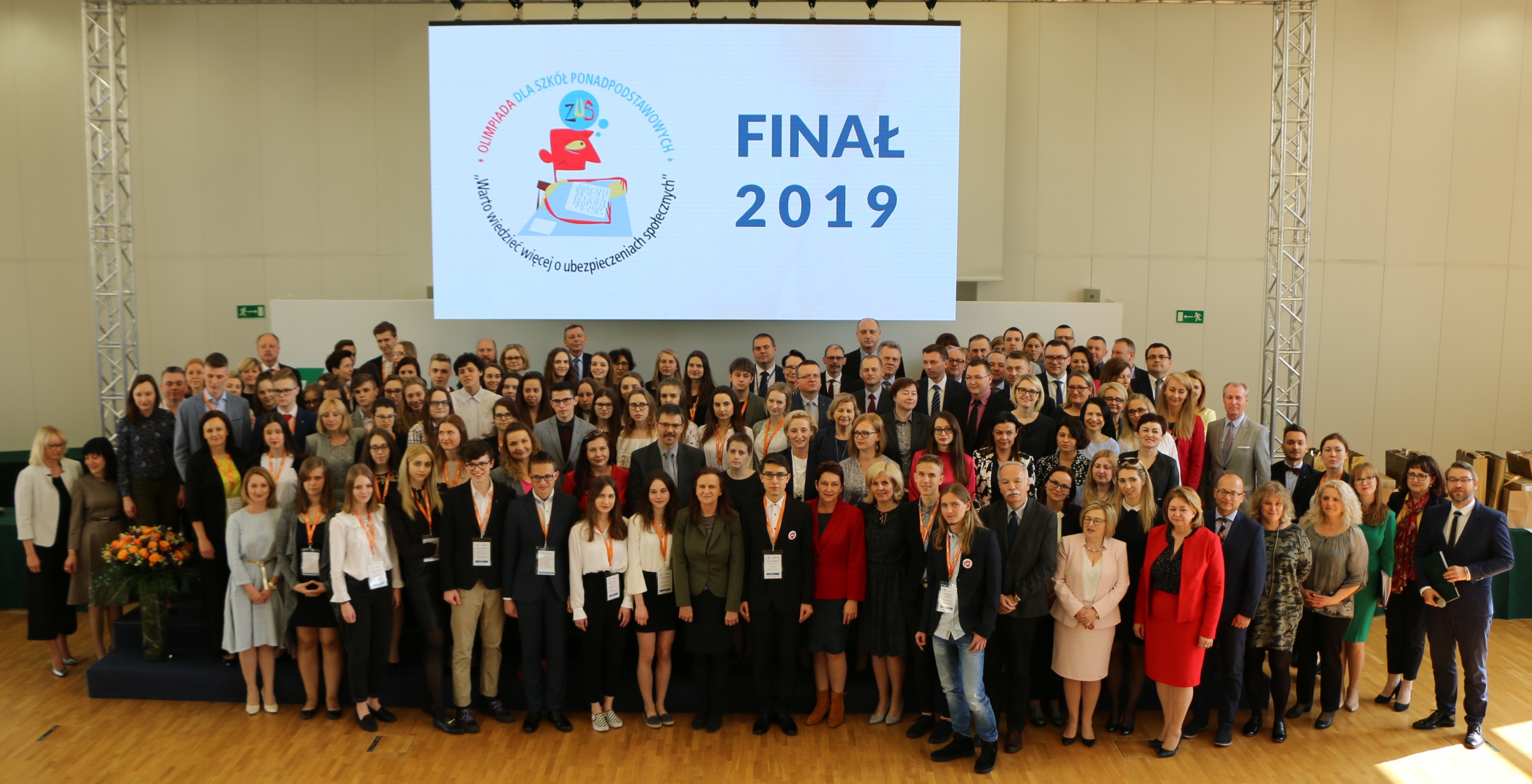 „To dla mnie zaszczyt, że po raz trzeci spotykamy się na olimpiadzie. Dowodem budowanego z roku na rok prestiżu olimpiady jest fakt, że jesteście Państwo tutaj obecni. Poziom olimpiady doceniają uczelnie, które przyznają jej laureatom indeksy i dodatkowe punkty przy rekrutacji” – powiedziała prof. Gertruda Uścińska, prezes ZUS, witając uczestników finału olimpiady. Przypomniała też, że Zakład Ubezpieczeń Społecznych ma podpisanych ponad 100 porozumień z uczelniami, z którymi wspólnie realizuje ogólnonarodowy projekt edukacyjny. Dzięki niemu poziom wiedzy o ubezpieczeniach społecznych wśród uczniów i studentów stale wzrasta. Prezes ZUS podkreśliła, że nadal w powszechnej świadomości społecznej pokutuje przekonanie, że składki płaci się na ZUS, gdy naprawdę składki płacone są na ubezpieczenia społeczne, a nie na ZUS. Natomiast ZUS, dzięki składkom, może realizować wypłaty świadczeń z ubezpieczenia społecznego. Profesor Gertruda Uścińska podkreśliła, że uczestnicy finału już teraz są zwycięzcami – mają wiedzę o ubezpieczeniach społecznych na poziomie wyższym, niż studenci.