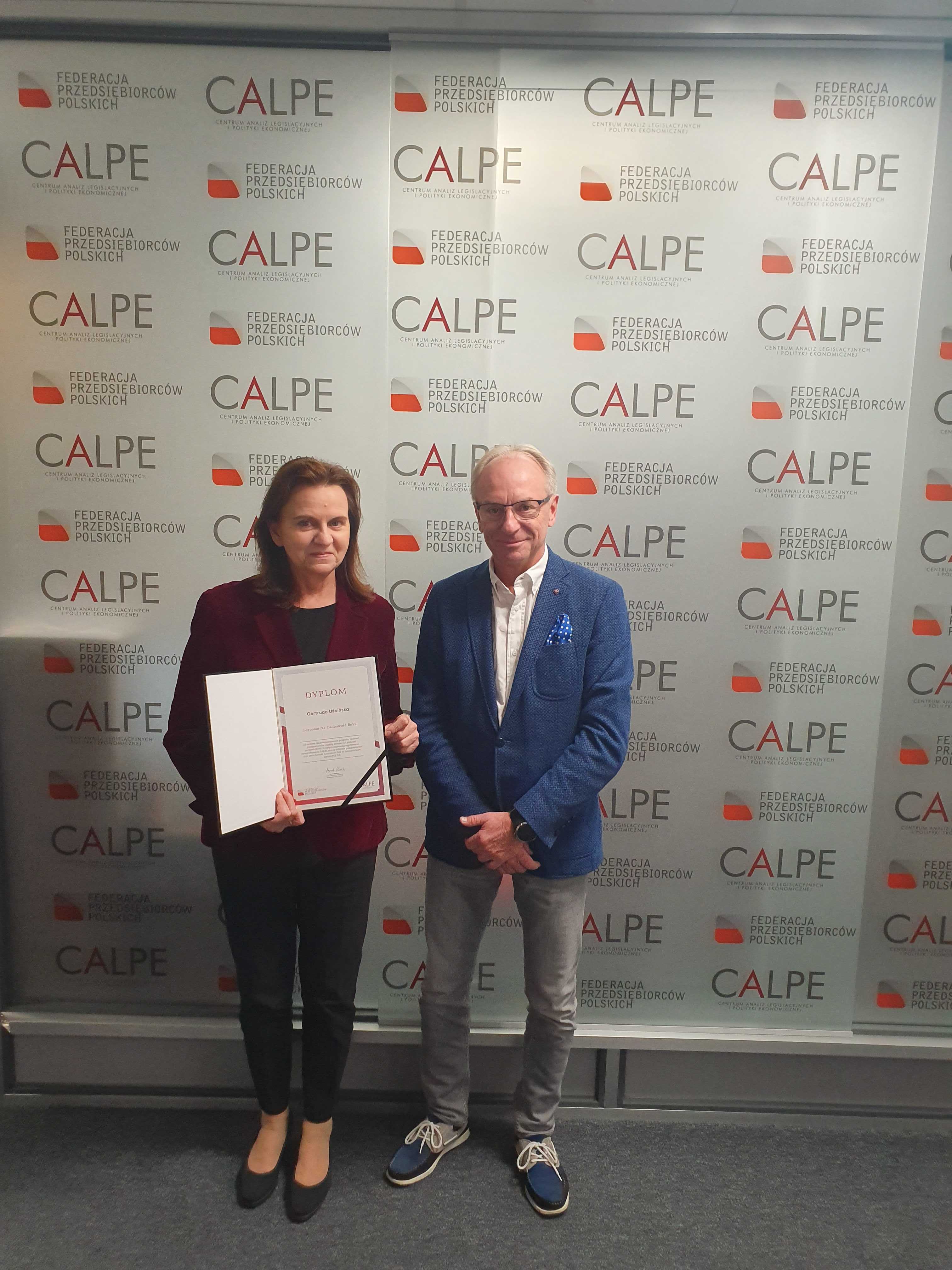 Profesor Gertruda Uścińska odebrała nagrodę z rąk przewodniczącego Federacji Przedsiębiorców Polskich Marka Kowalskiego.