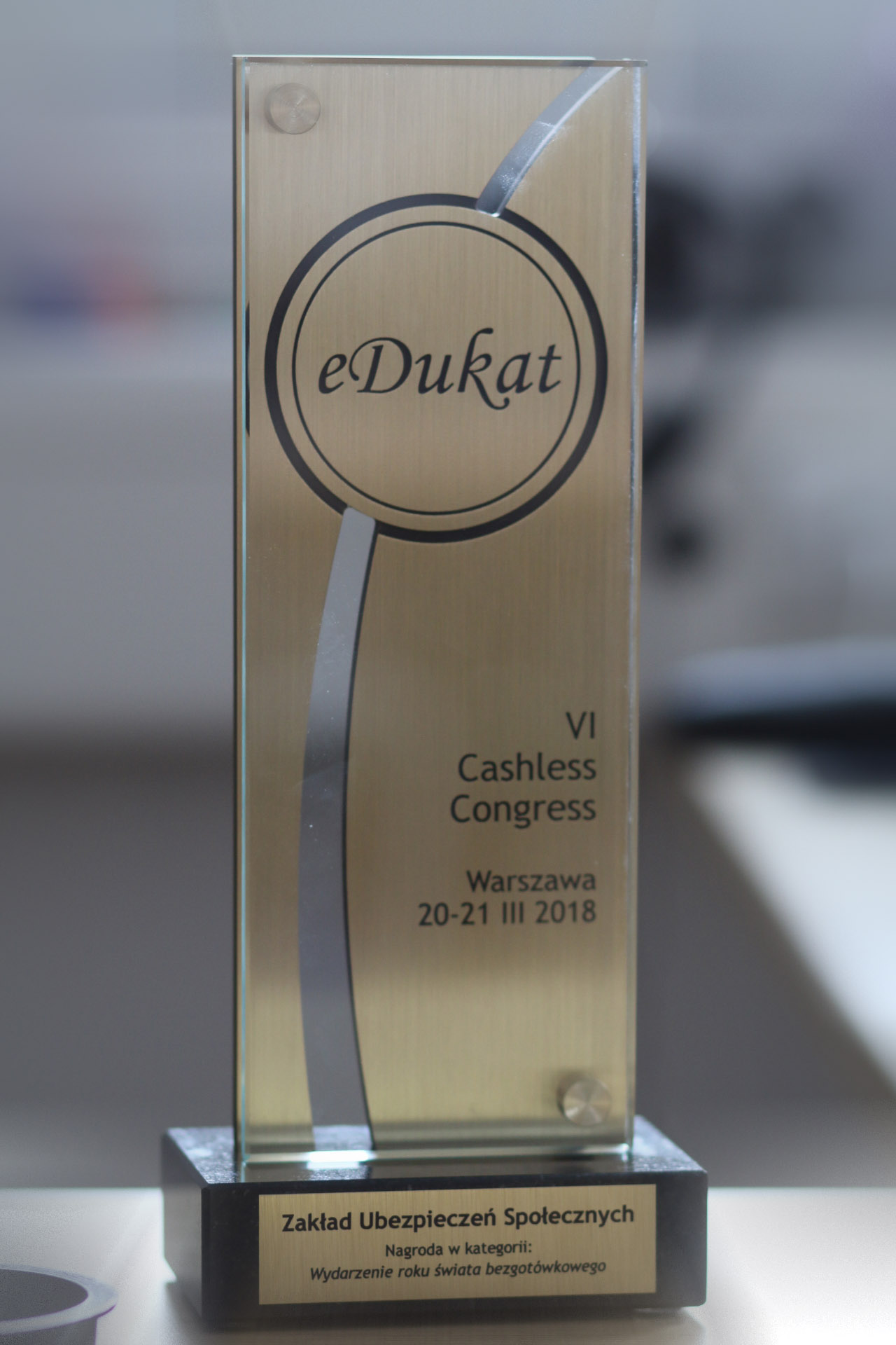 „W kierunku świata bezgotówkowego – zmieniająca się rola interesariuszy w ekosystemie płatności bezgotówkowych” – to wiodące hasło odbywającego się od 20 do 21 marca Międzynarodowego Kongresu Płatności Bezgotówkowych. Jednym z głównych wydarzeń kongresu było przyznanie specjalnych nagród: eDukatów. Są one przyznawane firmom oraz ekspertom zasłużonym dla rozwoju rynku płatności elektronicznych w Polsce. Zakład Ubezpieczeń Społecznych został nagrodzony złotym eDukatem w kategorii „Wydarzenie roku świata bezgotówkowego” za przygotowanie i uruchomienie e-składki, czyli indywidualnych numerów rachunków składkowych. Statuetkę w imieniu ZUS odebrał wiceprezes Paweł Jaroszek, który uczestniczył również w panelu otwierającym kongres.