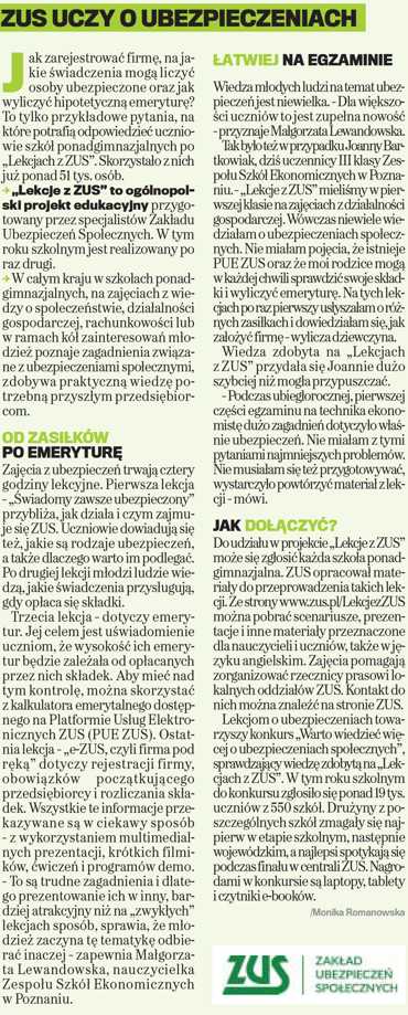 Media o projekcie "Lekcje z ZUS"