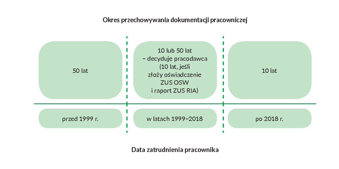 Dokumenty pracownika będziesz przechowywał nadal przez 50 lat od dnia zakończenia przez niego pracy u Ciebie, w każdym przypadku gdy: