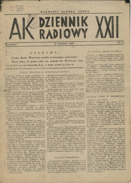 Powstanie Warszawskie, zbombardowanie budynku Pasty Dziennik radiowy, wydanie z 11 września 1944 r.