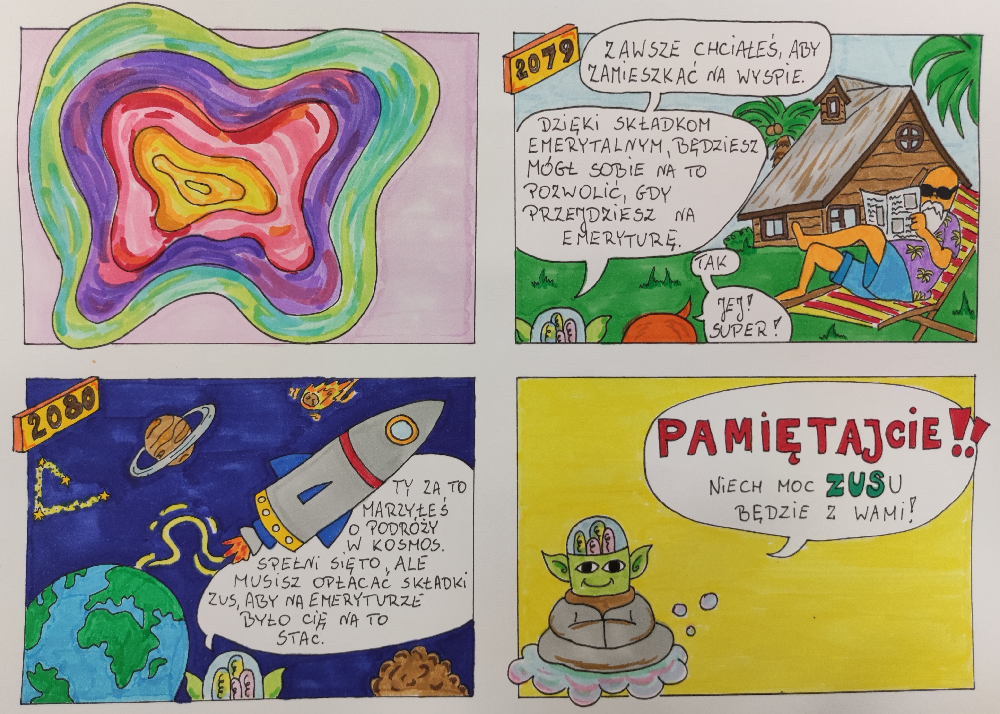Uczniowie znakomicie wywiązali się z zadania konkursowego. Prace, które wykonali, są pod każdym względem wyjątkowe. Pokazują, że młodzież doskonale rozumie, czemu służą ubezpieczenia społeczne.