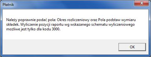 6. Po wskazaniu schematu wskaż przycisk OK. Nastąpi wyliczenie wartości składek oraz powrót do pozycji raportu.
