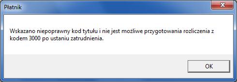 W okresie do września 2003 możliwe było również zastosowanie kodu 50 00 do przygotowania rozliczenia po ustaniu tytułu ubezpieczeń. Zatem w przypadku wykonywania korekt raportów za zaległe okresy, w których wykazywano kod tytułu 50 00 należy użyć tego kodu tytułu. Opisy poleceń w menu oraz treść komunikatów zostały przygotowane pod kątem bieżących zasad, tj. rozliczenia z kodem 30 00, jednak funkcjonalność programu pozwala na przygotowanie również dokumentu za zaległe okresy z użyciem kodu tytułu 50 00. |