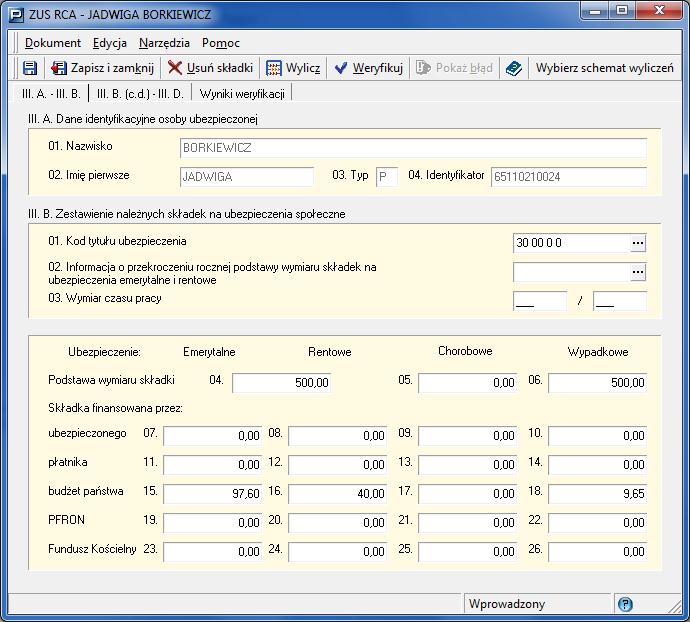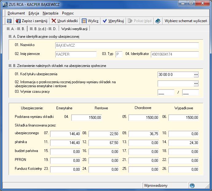 Program wypełni pola składkowe zgodnie z wybranym schematem.